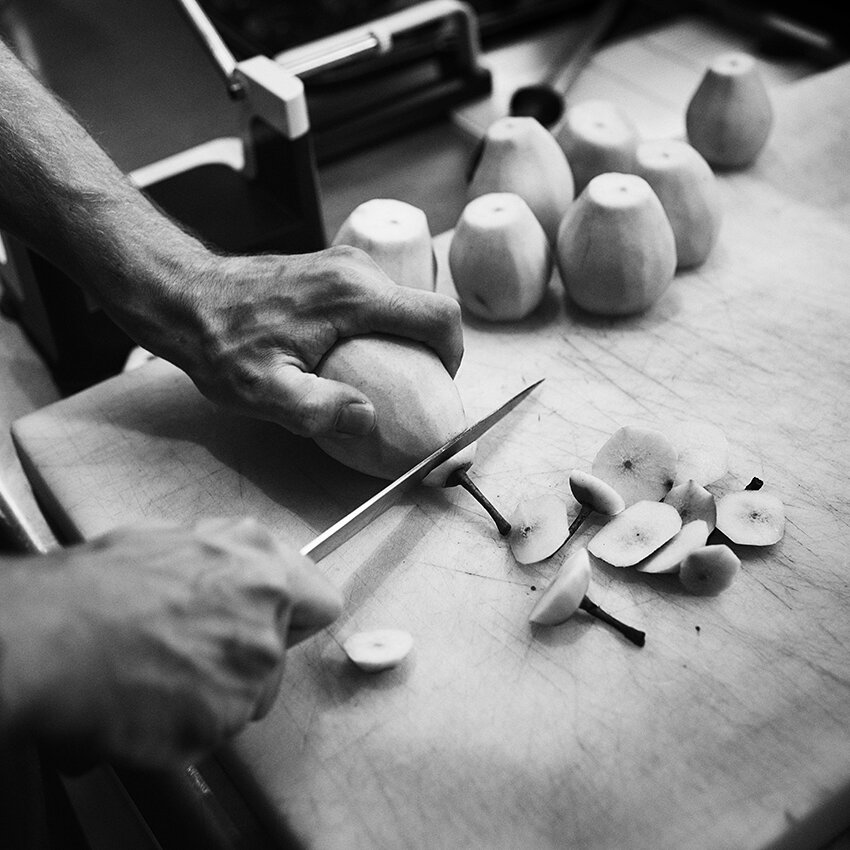 The star of our kitchen is the vegetables, which we obtain exclusively and daily fresh from the nearby Petzow Schlossgarten. The focus of our cuisine is to carefully bring out the fine flavors of each variety without showing off with carbohydrates. Meat and fish are the main protagonists of our cuisine, but we prepare them with precision as supporting actors without depriving them of their importance. This is how our dishes are created with the stylistically confident signature of our head chef Thomas Hübner. The menu changes almost daily and is based on the microcosm of the garden all year round. Our fish - in the summer from surrounding lakes, in the winter from the Baltic Sea - is prepared with the Ike-Jime method, thus preserving their clear flavor. The meat is also sourced from our immediate surroundings. We use international techniques without losing our regional roots and we make use of Italian influences. However, the aim is always to bring out the product's flavor - with style and precise craftsmanship.