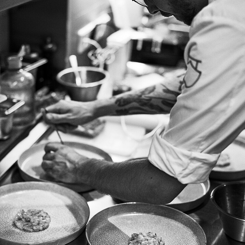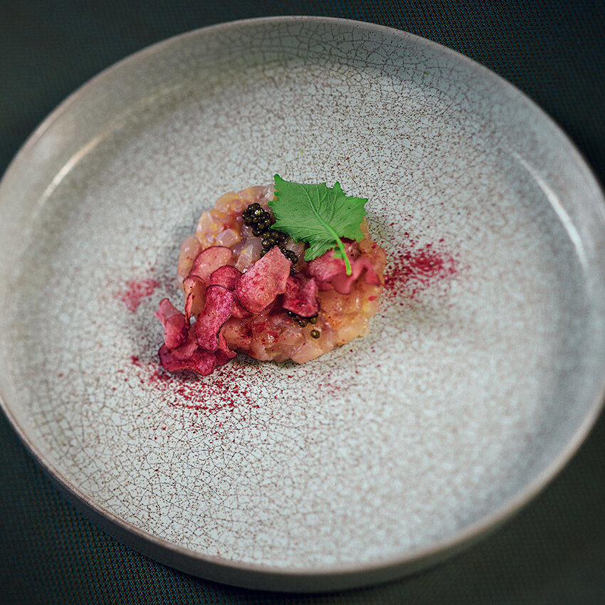 Chef Thomas Hübner is almost half Italian, so long has he been cooking in renowned restaurants in Italy. He completed his training in Germany with Kolja Kleeberg at "Vau". From there, he moved on to "Margaux" to Michael Hoffmann, who was one of the first to establish vegetarian menus at the very highest level. After "Facil", where he cooked under Michael Kempf, he moved to Italy, where he continued to cook in starred restaurants. Only after twelve years in renowned establishments such as the "Cibreo", "Osteria di Passignano", the "Louis XV" of Alain Ducasse, and "Enoteca Pinchiorri" in Florence did he return to Germany. There he first worked in "Bayrisches Haus" in Potsdam, before taking over the kitchen of the "Alte Überfahrt" in 2016. Here, the 39-year-old has now found his very own style, which reflects both his high level of craftsmanship as well as his creativity and, yes, his love of Italy.